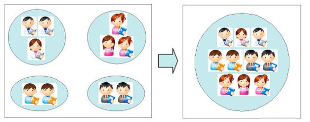 配分の時、注意すべき点は、メンバーの仕組みへの関連度に基づいて配分することです。関連度が低い、又は関連しないチームが構築を担当しても仕組みの完成度は低いものになり、時間的にも非効率となります。このことから、チームメンバーの編成も慎重に行わなければなりません。