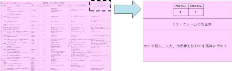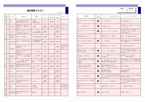 又チェック必須項目の●印は大変危険度が高いプロセスのことです。この危険度が高いプロセスの段階で業務を行う時は特に注意するよう指導されています。クレーム・ミスが発生した場合、発生したプロセスが●印であれば院長以下経営層に報告される仕組みとなっており、スムーズな対応ができるようになっております。特に医療業界は、各プロセスが人の命に関わることが多く、最大の注意を払うことが必要です。