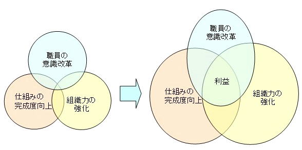 この課題を解消するためには時代が求める仕組みを構築することが不可欠でありますが、ここで重要となるのが仕組みを構築するプロセスにあります。仕組みを構築することに対し全職員が参加し、問題点と仕組みを理解し、見直し、改善していくというプロセスこそがシステムを支える根幹となります。