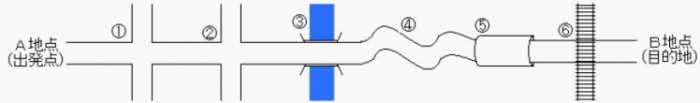 ①、②は交差点です。この交差点は道路が交わるところであり、プロセスネットワークといわれるところです。例えば、「医療サービス管理システム」とした場合、①は「受付」というプロセスであれば、「受付プロセス」が交わる、②は「患者の主訴・把握・診断」というプロセスであれば、「患者の主訴・把握・診断プロセス」が交わることとなります。