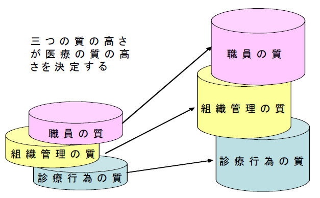 医療の質とは、診療行為の質、提供体制(組織管理)の質、職員の質である。医療における質保証とは、それらすべての質を保証することである。